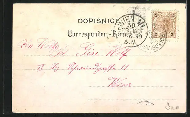 alte Ansichtskarte, gelaufen 1899, guter Zustand