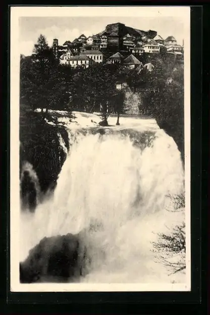 AK Jajce, Wasserfall mit Ortsansicht