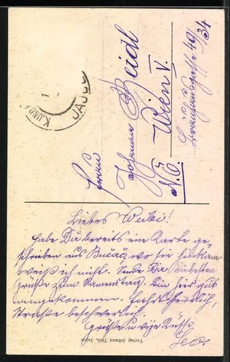 alte Ansichtskarte, gelaufen, Briefmarke entfernt, guter Zustand