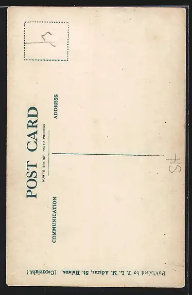 Personenbezogene Daten auf der Rückseite der Karte wurden durch blauen Textmarker unkenntlich gemacht. Die blauen Stellen sind auf die Vorderseite durchgeweicht und wirken sich negativ auf das Postkartenfoto aus
