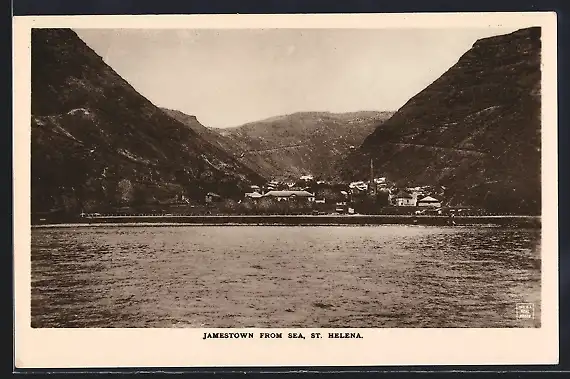 AK Jamestown, View from Sea, Blick auf Kirchturm und Berge