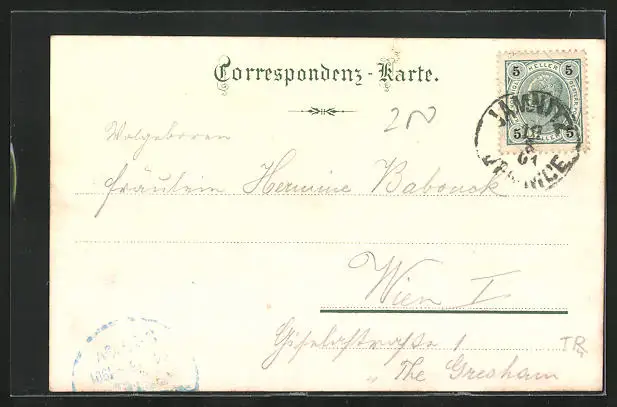 alte Ansichtskarte, gelaufen 1901, Stempelspur, guter Zustand