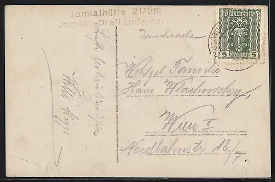 AK Jamtalhütte /Jamstal, Ansicht mit Umgebung und Dreiländerspitze