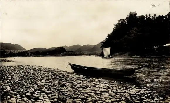 AK Japan, Kisograwa, Boot am Ufer