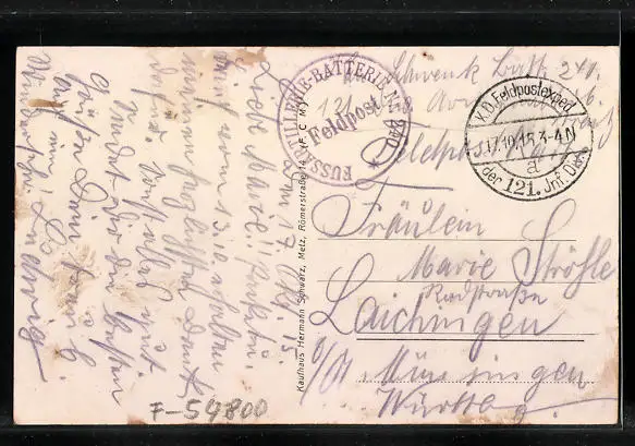 alte Ansichtskarte, gelaufen 1915 als Feldpost, guter Zustand