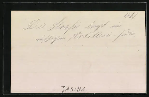 Personenbezogene Daten auf der Rückseite der Karte wurden durch blauen Textmarker unkenntlich gemacht. Die blauen Stellen sind auf die Vorderseite durchgeweicht und wirken sich negativ auf das Postkartenfoto aus