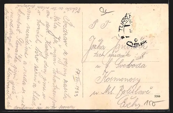 gelaufen 1933, Briefmarke entfernt, rückseitig Oberflächenschaden, Klebe- u. Papierreste li. oben, guter Zustand