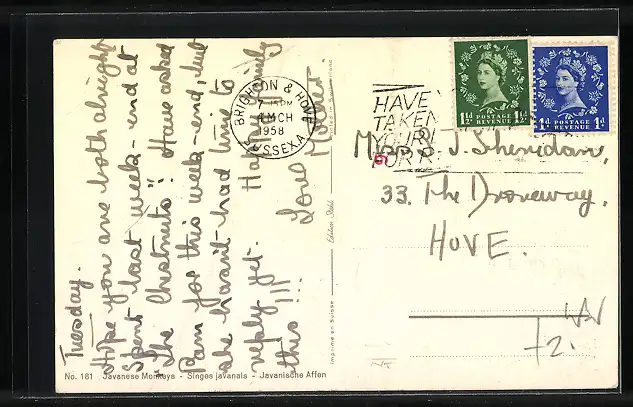 alte Ansichtskarte, gelaufen 1958, guter Zustand