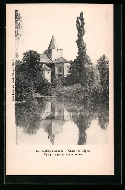 AK Jazeneuil, Chevet de l`Église, Vue prise sur la Vonne en été
