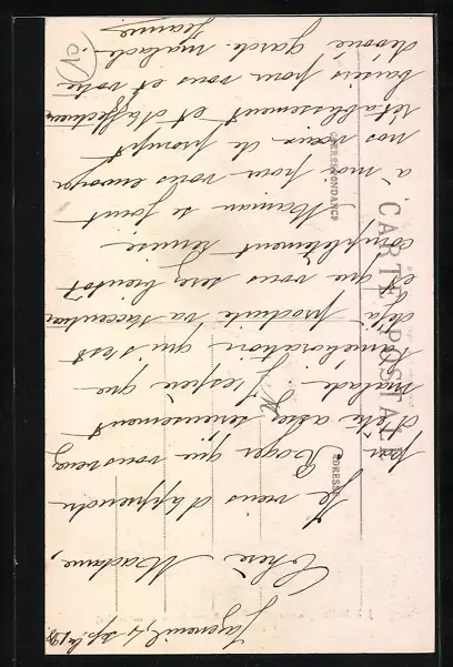 Personenbezogene Daten auf der Rückseite der Karte wurden durch blauen Textmarker unkenntlich gemacht. Die blauen Stellen sind auf die Vorderseite durchgeweicht und wirken sich negativ auf das Postkartenfoto aus