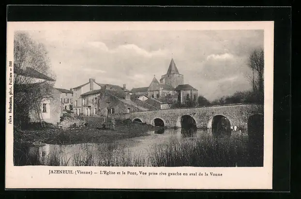AK Jazeneuil, L`Eglise et le Pont, Vue prise rive gauche en aval de la Vonne