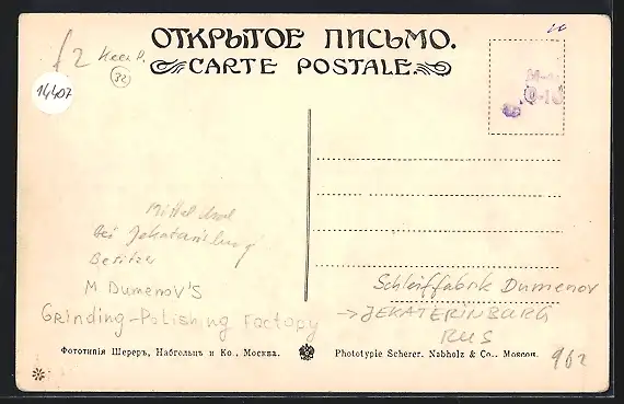 AK Jekaterinburg, Die Schleiffabrik Dumenov