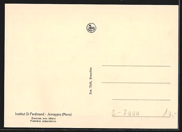 AK Jemappes /Mons, Institut St Ferdinand, Exercises avec batons