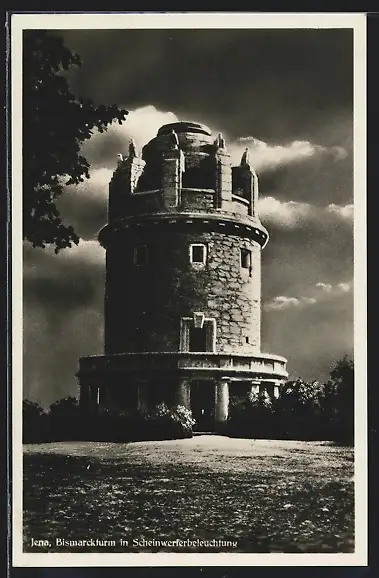 AK Jena, Bismarckturm in Scheinwerferbeleuchtung