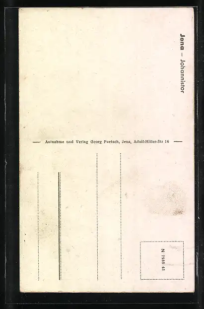 Personenbezogene Daten auf der Rückseite der Karte wurden durch blauen Textmarker unkenntlich gemacht. Die blauen Stellen sind auf die Vorderseite durchgeweicht und wirken sich negativ auf das Postkartenfoto aus