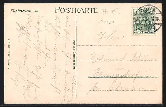 gelaufen 1911, Eckknicke li. oben, guter Zustand