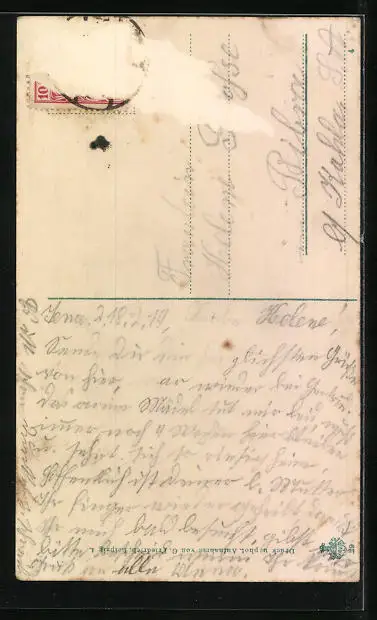 alte Ansichtskarte, gelaufen, Briefmarke entfernt, rückseitig Oberflächenschaden, Bugspur unten li., guter Zustand