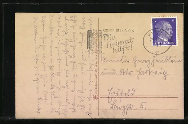 gelaufen 1943, Eckknick oben li., guter Zustand