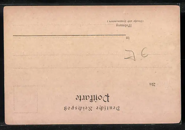 Personenbezogene Daten auf der Rückseite der Karte wurden durch blauen Textmarker unkenntlich gemacht. Die blauen Stellen sind auf die Vorderseite durchgeweicht und wirken sich negativ auf das Postkartenfoto aus