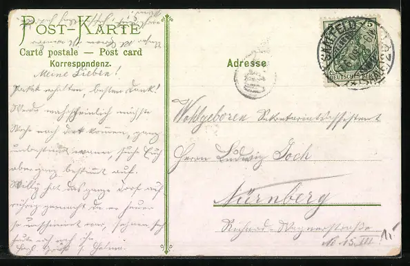 alte Ansichtskarte, gelaufen 1909, Eckknick oben links, guter Zustand