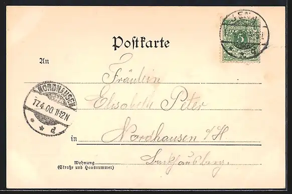 alte Ansichtskarte, gelaufen 1900, Stempelspur, guter Zustand