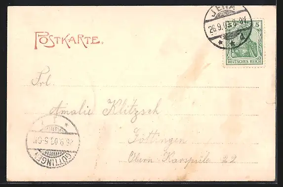 alte Ansichtskarte, gelaufen 1903, minmaler Einriss li. mittig, guter Zustand