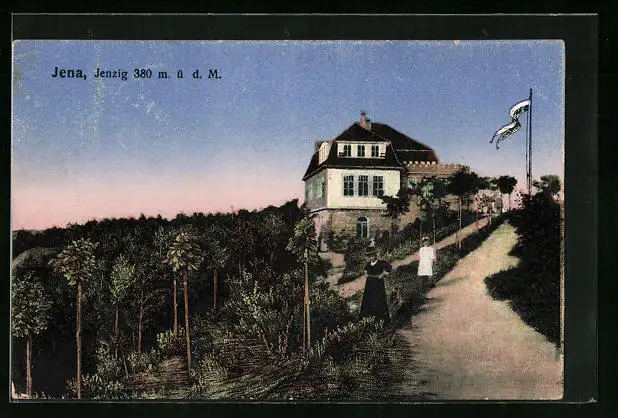 AK Jena, Mutter und Tochter spazieren auf dem Jenzig