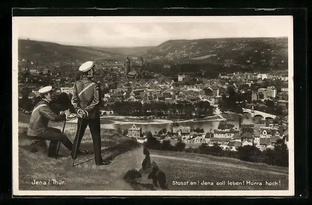 AK Jena, Ortsansicht mit Studenten aus der Vogelschau