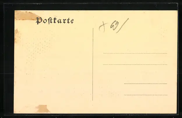Personenbezogene Daten auf der Rückseite der Karte wurden durch blauen Textmarker unkenntlich gemacht. Die blauen Stellen sind auf die Vorderseite durchgeweicht und wirken sich negativ auf das Postkartenfoto aus