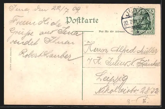 alte Ansichtskarte, gelaufen 1909, Stempelspur, guter Zustand