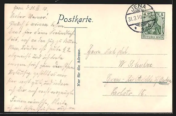 alte Ansichtskarte, gelaufen 1910, guter Zustand