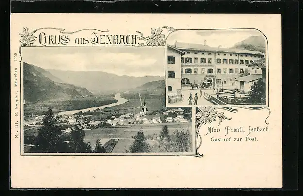 AK Jenbach, Gasthof zur Post von A. Prantl, Panorama