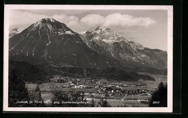 AK Jenbach, Ortsansicht gegen Sonnwendgebirge