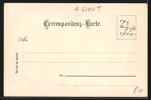 Personenbezogene Daten auf der Rückseite der Karte wurden durch blauen Textmarker unkenntlich gemacht. Die blauen Stellen sind auf die Vorderseite durchgeweicht und wirken sich negativ auf das Postkartenfoto aus