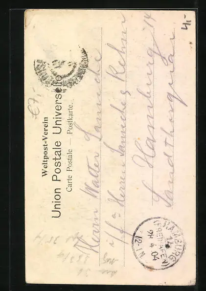 alte Ansichtskarte, gelaufen 1904, Briefmarke entfernt, Eckknick re. oben, guter Zustand