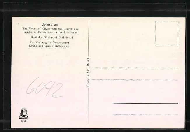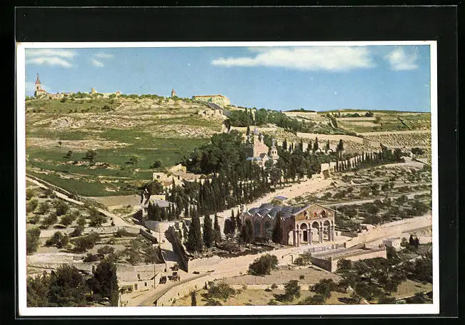 AK Jerusalem, Der Ölberg aus der Vogelschau, vorn Kirche und Garten Gethsemane