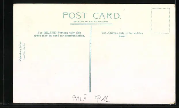 Personenbezogene Daten auf der Rückseite der Karte wurden durch blauen Textmarker unkenntlich gemacht. Die blauen Stellen sind auf die Vorderseite durchgeweicht und wirken sich negativ auf das Postkartenfoto aus