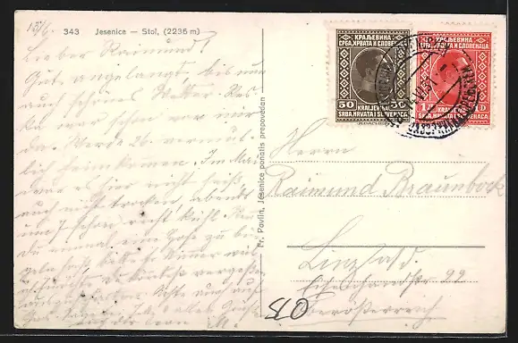 AK Jesenice, Ortsansicht gegen die Berge