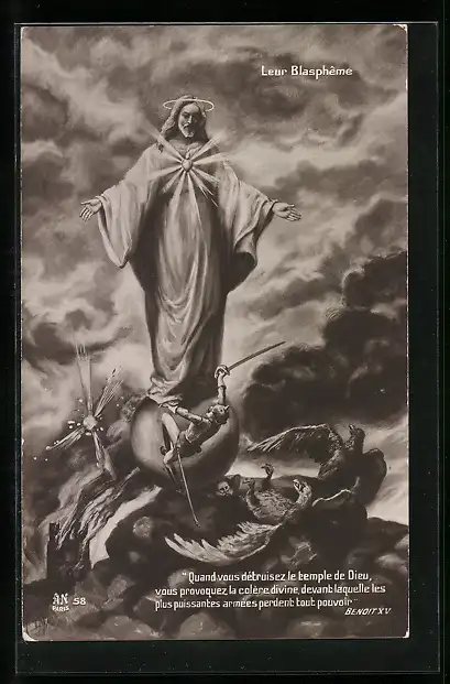 AK Jesus vertreibt die blasphemischen Deutschen, Propaganda Entente