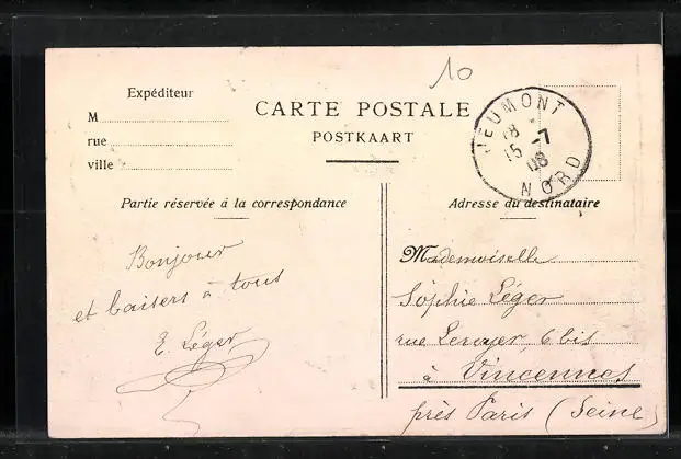 gelaufen 1908, minimaler Einriss unten mittig, Stempelspur, guter Zustand