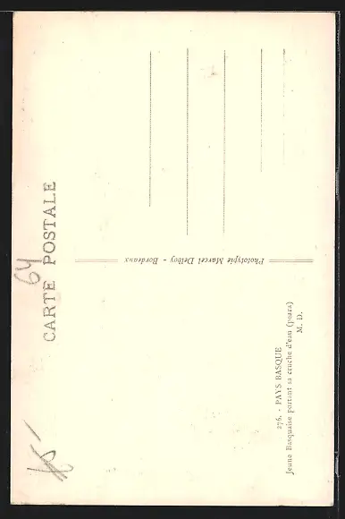 Personenbezogene Daten auf der Rückseite der Karte wurden durch blauen Textmarker unkenntlich gemacht. Die blauen Stellen sind auf die Vorderseite durchgeweicht und wirken sich negativ auf das Postkartenfoto aus