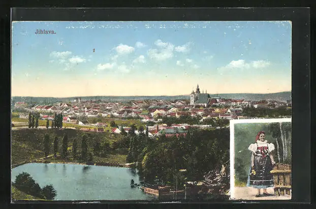 AK Jihlava, Teilansicht, Frau in Tracht