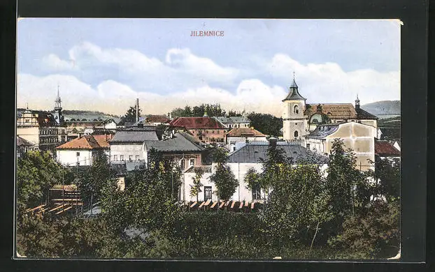 AK Jilemnice, Ortsansicht aus der Vogelschau