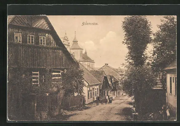 AK Jilemnice, Strassenpartie mit Wohnhäusern