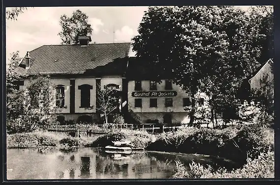 AK Jocketa, Ortspartie mit Gasthof Alt-Jocketa und Teich