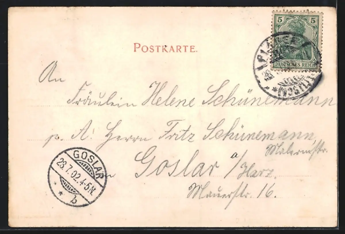 alte Ansichtskarte, gelaufen 1902, Stempelspur, guter Zustand