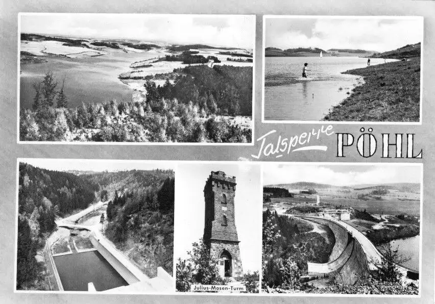 Ansichtskarte Jocketa Talsperre Pöhl, fünf Abb., gestaltet Erhaltung I-II postalisch gelaufen, gestempelt: Plauen, 21.5.68 Druckvermerk: 1966 Herstellungsland: DDR Verlag: VEB Bild und Heimat, Reichenbach i. V. - 14/6116