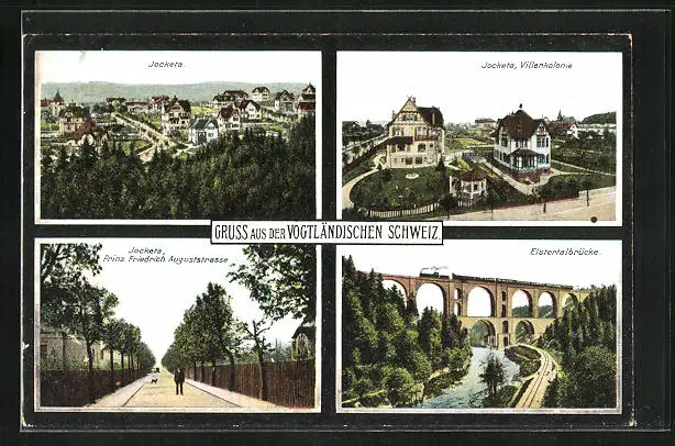 AK Jocketa /Vogtländische Schweiz, Villenkolonie, Prinz Friedrich Auguststrasse, Elstertalbrücke