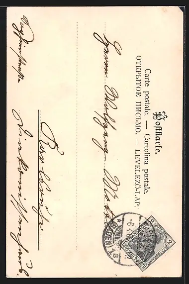 gelaufen 1902, Eckknick oben li., guter Zustand