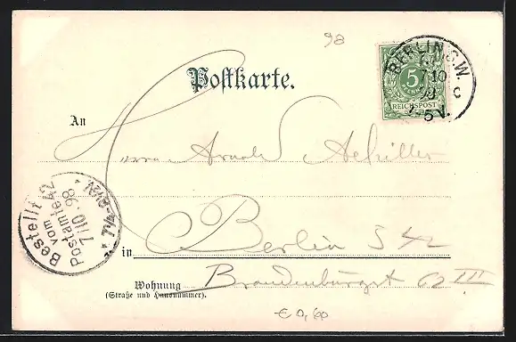 alte Ansichtskarte, gelaufen 1898, guter Zustand